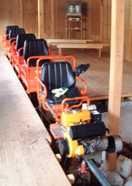 5人乗りのトロッコに乗り、黄色いヘルメットをかぶり、急斜面へGO!!