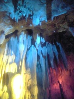 それほど広い洞窟ではないが、ライトアップされた鐘乳石や石旬によって、