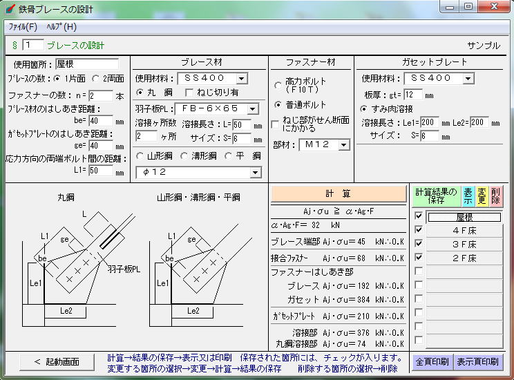 | ○ | 本ソフトは、鉄骨ブレースの保有耐力接合を計算するものです。 |