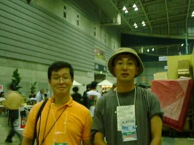 | 2001年 9月 2日 JI2SQSJI2SQS 豊田市の田中さんに、ハムフェアー会場にてお逢いする事が出来ました。左側がJI2SQSさんです。ハムフェアー3日目の日曜午後、「横浜市移動」で大声を出していた430MHzFMで声をかけていただきました。 田中さんとは、無線関係の集いやイベントで、ずいぶん若い頃に時々お逢いしていました。ここしばらくはお空の方でお逢いする機会が少なかったので、久々のQSOをすることが出来ました。 田中さんのホームページには、お顔が載っていないのを知っていたので「今日はカエルのお面はお持ちじゃないんですか?」と、聞きましたが、きょとんとしたご様子でした。カエルではなくワニだったのですね。HI 横浜市移動の途中だったため、お話もそれほど出来ませんでした。しかし、ハムフェアー会場には、たくさんの出会いがあるものですね! |