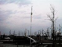 「簡単設営」1番1.9/3.5メガ用オートアンテナチューナー With ロングワイヤーのアンテナシステムをNEW! オートアンテナチューナーは、ケンウッド「AT300」です。 設置作業の軽減を最重要に作ってみました。 98 11/20 愛知県刈谷市総合運動公園にて 調整中を撮影 |