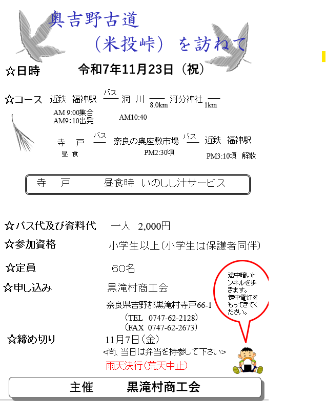 2019/09/24 黒滝オータムフェスティバル 2019年10月26日(土)27日(日)11:00~16:00