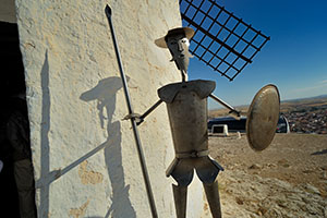 丘の上の風車を凶暴な巨人だと信じ戦いを挑んだドン・キホーテ。幻想とロマンを秘めた光景が残されていた。)