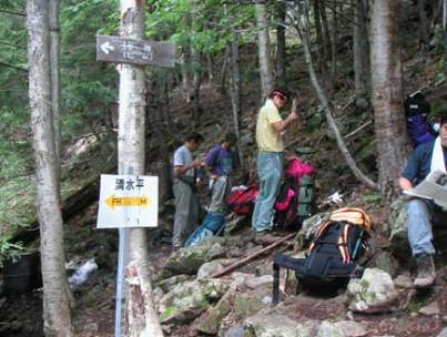 清水平の水場で手と顔を洗い南アルプスの美味しい水をグビグビ!