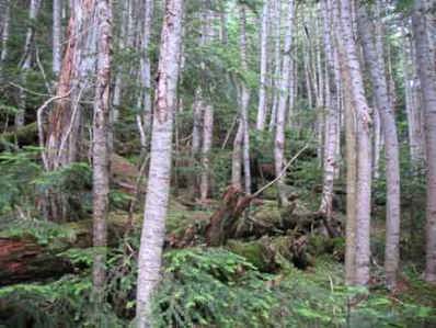 明るいシラビソの美林になります。倒木は朽ちて苔むしてクッションの効いたフワフワの道が続きます。