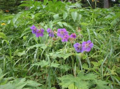 グンナイフウロ、キンポウゲ、イブキトラノオ、マツムシソウ、ミヤマタンポポ、クルマユリetc 斜面いっぱいに色とりどりです。