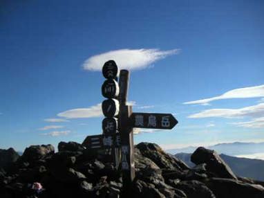 北岳山荘 5:40→中白峰 6:12→間ノ岳7:06⇔7:25→三峰岳 8:01→熊ノ平小屋 9:13⇔9:30→小岩峰 10:28→大崩壊の稜線 12:05→蝙蝠岳分岐 13:55→塩見岳東峰 14:40→西峰 14:52→塩見小屋 15:50