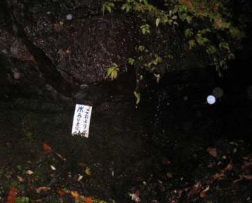 唯一の水場に着きます。大きな岩から苔清水がポタポタと落ちて、優しい?Eリーダーが背中が濡れるのも、ものともせずに皆に美味しい冷たい水を汲んでくれます。