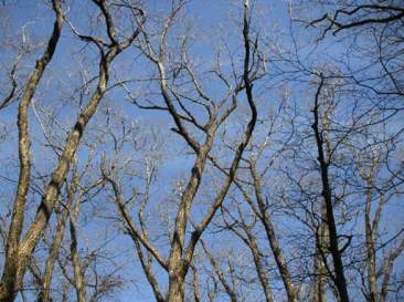 池をあとに尾根道を行きます。高い空からさんさんと陽が差して、杉林からブナ林に変わります。冬を耐えて目覚めた木々が両手をいっぱいに広げ空に向かって大きく伸びをしています。天まで届け〜と言わんばかりに。