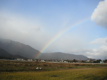 空に橋をかける光のプリズム、虹です。思いがけない神様からのプレゼントは雪と虹!