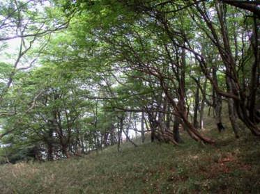 さすが鈴鹿一のヤセ尾根と言われるだけあって岳峠から西へ長く連なるこの尾根はヤセ尾根、岩峰、ガレ場と続き、いくつもアップダウンを繰り返します。ブナの多い癒しの森を通り、水沢岳の急な上りではスリップ、落石に細心の注意をはらいます。水沢峠までもかなり急な滑りやすい下りが続きます。
