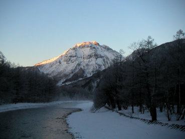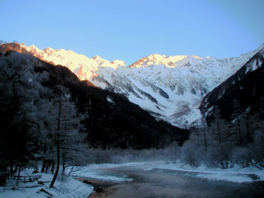 空は透き通る青さで広がり、凍える穂高連峰がモルゲンロートに染まって行く。