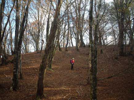 葉を落としたブナ林を落葉を踏み分けて歩くのもいいですね。