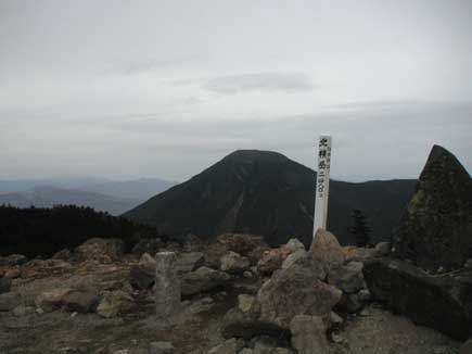 団体客と手を振って別れて北横岳への道をとる。三岳への分岐があり先には岩峰のピークが見え、やおら気を魅かれて寄り道をする。岩に登って展望を楽しむが山頂はもう一つ先の岩峰らしい、と後で分かる。