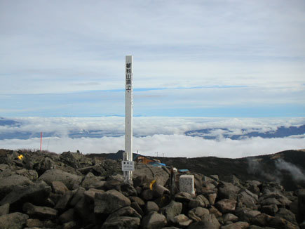 昨日の北横岳〜大岳の朝の顔も清清しい。夏には大展望プラスお花畑なのだろうと思わせる所だ。山頂には佐久市最高地点(2224m)の標示がある。