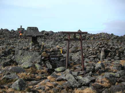 30分程岩の急登をのぼると山頂、とてつもなく広い岩石の山頂は野球が出来るほど広いと何かで読んだが、本当に広さで言えば野球でも何でも出来そう。真ん中の窪地に蓼科神社が祭られ、方位盤があり360度の展望が楽しめる。