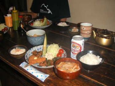 ストーブ、コタツに火が入りお湯がシュンシュンと沸いて、夕食までもう一人の中年の方と山の話に花が咲きます。