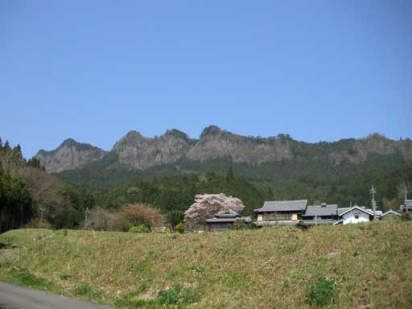 背景にダイナミックな屏風岩がそびえ、絵に描いたような里景色にほのぼのとした気分になります。