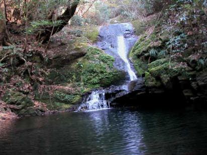 深い緑の滝壺と何段にも分かれて落ちてくるこの滝は涼をとるには格好の地で手や顔を洗って一息つきます。