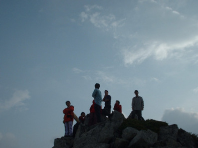 その時前方から、どこか聞き覚えのある声が。山の家さんです!山の家さん率いる太郎組さんは何と3時起床でヘッドランプをつけての出発だったそうです。あの沢沿いの急登をヘッドランプで、すごい頑張りです、脱帽!脱帽!