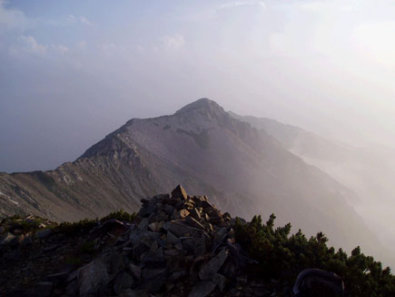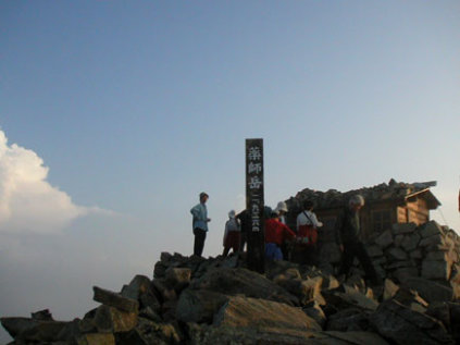 太郎組さんはどうしているのかな?昨夕から何度も連絡をとるのですが電波状態が悪く繋がりません。でも運良くここで連絡がとれてL山の家さんのお声が、どうも息がはずんでいるようで「今小屋を過ぎて…向かっている…」で切れてしまいました。歩行中であることは確かです。小屋を過ぎて?どこの小屋?(これが5:22分です)気になりながら山頂へ。