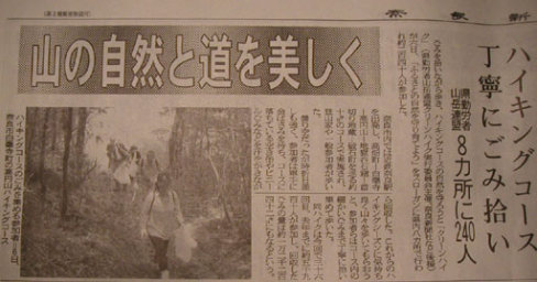 環境汚染や地球温暖化による自然破壊などがクローズアップされる中で私達が出来る手作りの美化運動としてスタートしたクリーンハイクも36回目を数え、今年も奈良県内8ヶ所で一斉に清掃活動が行われました。