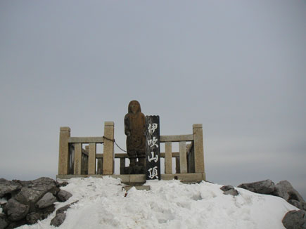 山頂は凛々しい大和武尊像が奥美濃の山、鈴鹿の山、琵琶湖、比良の山を見据えて弥勒菩薩様は寒そうです。