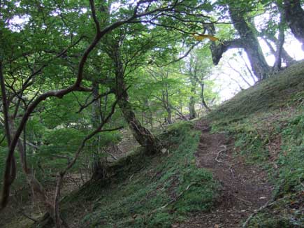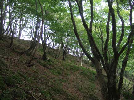 水から離れてジグザグの上りはやや急登になる。カエデやブナの雑木林が美しい。