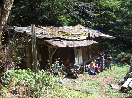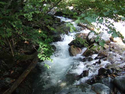 これもまたこの渓谷にふさわしい岩魚留小屋です。北アルプスの人気コースや八ヶ岳などではもうお目にかかれないでしょうね。(今日は閉まっています)小屋横の巨大な木が何百年の来し方を物語るようです。小屋に水はふんだんにあります。小屋のすぐ上には岩魚を足止めしたと言われる三段に落ちる岩魚留めの滝があり絶え間なく真っ白い飛沫をあげています。