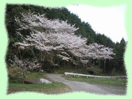 北宇智に下りると満開の桜です。緑を背にソメイヨシノの浮き立つ白さが目に染みます。