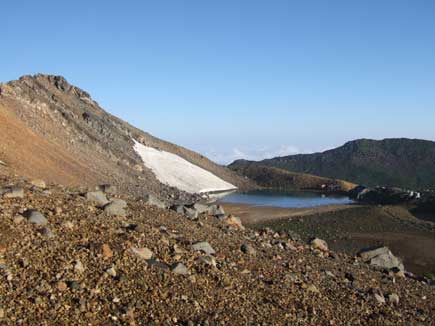 一の池を右に見ながらひと上りで山頂です。これが3000mの山頂かと思うくらいの賑わいでそれ程広くはない山頂はごった返しています。
