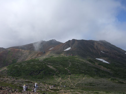 お参りの信者さんが多いのでしょう、それぞれの休憩所はいわゆる山小屋よりはかなり大きいようです。女人堂は山頂部が望める大変展望の良い所、ここは森林限界で冷たい風が吹き抜けていきます。
