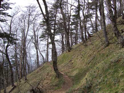 沢筋はあふれる新緑でしたが尾根にあがるとやっと枝先がふくらみを持った程度です。