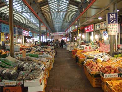 縦横に路地があって魚介類を始め豚足、豚頭、果物、野菜、キムチ、民芸品、屋台等面白くて何度もウロウロしました。