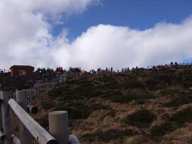 山頂は噴火の生々しい溶岩そのままです。鈴なりの人出、若い学生さんが多かったようです。