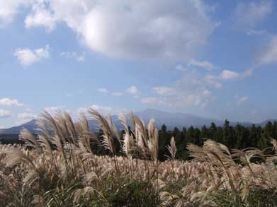今は一面のススキが黄金色に輝いて裾を引く漢拏山の全景と見事にマッチして美しい光景です。