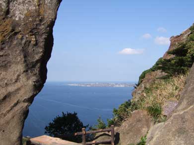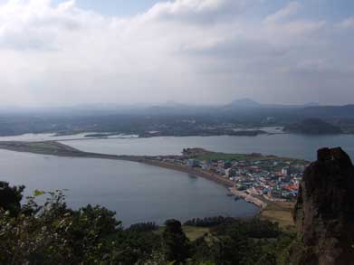 漢拏山の噴火による溶岩が海中に押上げられそのまま固まったもので北側は絶壁で西側の一部が本島と繋がっています。頂上(約180m)へは階段を30分ほど上ります。真っ青の海と奇岩でここから見る日の出はそれは、それは間違いなく絶景でしょう。