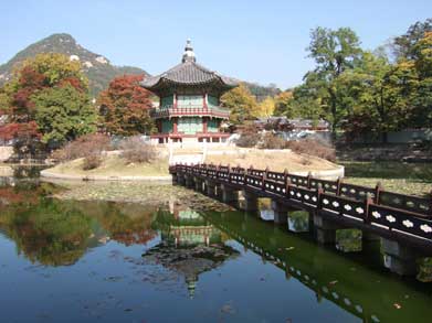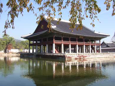 慶会楼 外国使節の接待や重要な宴会などに使われた楼閣で国宝、W10000紙幣に描かれています。