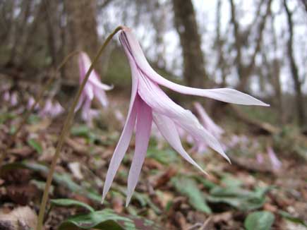 花びらを反らせたカタクリは暖かい陽ざしを喜ぶ可憐な姿
