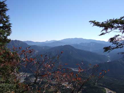 屏風岩公苑から少し下った若宮神社横から登る。植林の中をジグザグに上って屏風岩山頂の小さな標示に従って屏風岩の上に出る。↓屏風岩上からの展望。