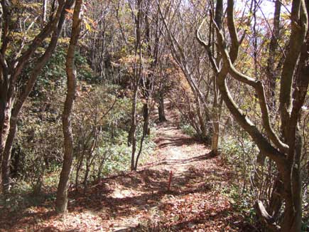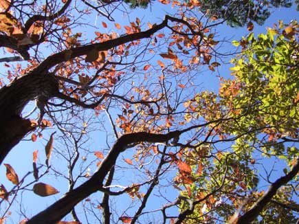 クマタワから東海自然歩道を下る。あまりの美しい色にここでコーヒータイムになる。