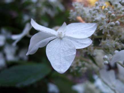 吊橋を渡ると、涼しげなエゾアジサイやホトトギスの花が咲いています。尋常でない長いはしご、岩と根がらみのヤセ尾根、双門の滝までに一つ山を越さなければ行けませんがこれがまたキツイ!!!重いザックに喘ぎます。