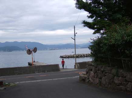 電柱に大きく登山口の標示があります。のどかな海辺の集落を過ぎて山道に入ります。