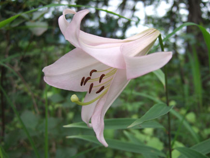 山道に入るとすぐに優しいピンクのササユリと出合います。