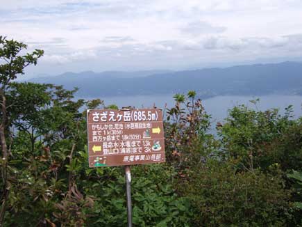 笹とブナの緩い上りになり山頂に到着です。山頂から少し海側に下りたところに好展望の岩があり絶景!です。敦賀湾、若狭湾と青く穏やかな海と湖北の山々、遠くは白山までも。その中で原子力発電所だけが浮いて不似合いと思うのは私の偏見でしょうか?