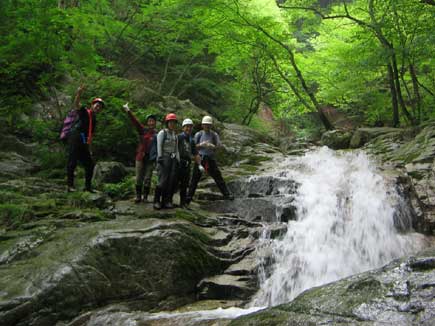 水量は恐いほど多くもなく、物足りないほど少なくもなく、楽しめる適量です。真っ白にはじける水と青く深い滝壺、淵、釜が次々に繰り返され緑と岩と清流の渓谷美満喫します。