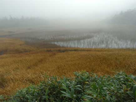 木道を通って草紅葉が見事な田茂萢(タモヤチ…ちなみに萢は低湿地の意)湿原です。ガスがグレーベースの幻想を一層演出しています。このところ湿原を訪れる機会が多く湿原に咲く花にlove loveです。トキソウ、サギソウ、ワタスゲなど華奢ではかなげですね。