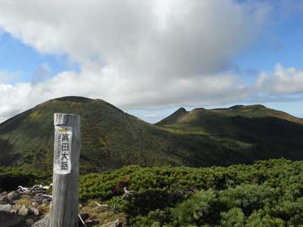 大岳を過ぎて仙人岱に下ります。朝のガスが飛んで青空になり八甲田の全貌が広がります。