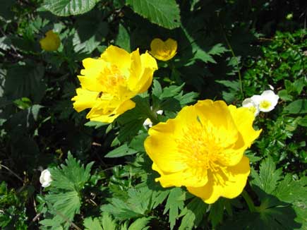 ひと休みした傍らに咲いていた鮮やかな黄色のチシマノキンバイ(シナノキンバイによく似て、違いが分かりにくいですが、ガイドブックや地図にはチシマノキンバイと記されているので)