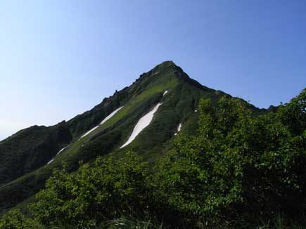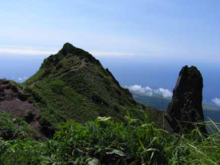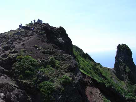 崩壊がひどく西側(沓形コース側)はスパッと切れ落ちて(覗いたらオーバーハングしていました)キケン区域でロープが張られています。沓形コースも入山禁止でした。